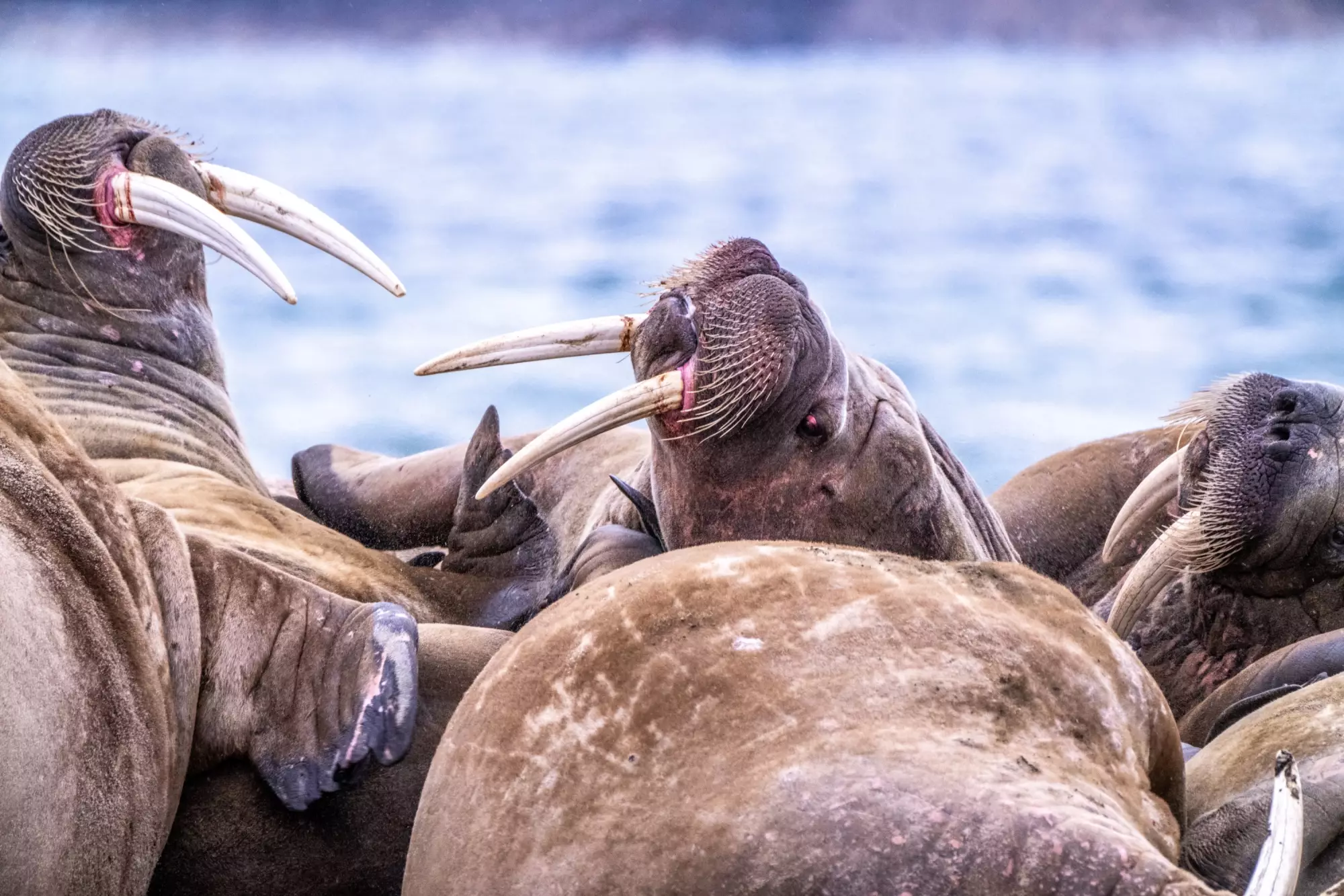 Jindy jsme zakotvili u malého ostrůvku s kolonií mrožů. Museli jsme se pohybovat potichu a s respektem. Leželi jeden přes druhého a když se někdo pohnul špatně, začalo reptání a hádky. A ten pach! Ale fascinovalo nás to.